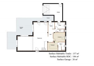 Cette belle maison séduit par ses lignes très contemporaines et par ses volumes : Au rez-de-chaussée : un vaste séjour de plus de 60 mètres carrés avec cuisine ouverte, ainsi qu’une belle suite parentale de 25 mètres carrés, dressing et salle d’eau privative. L’étage s’ouvre sur une belle mezzanine qui, quant à elle, donne accès à 2 chambres ainsi qu’une salle de bain avec WC séparés. Pour plus de praticité encore, la maison dispose en outre d’un garage de 26 mètres carrés et d’une entrée abritée. Les larges ouvertures permettent de bénéficier de beaux apports de lumière extérieure et de profiter d’une vue magnifique sur le jardin, agrémenté d’une belle terrasse. Sa pièce de vie de 44 m², ses deux chambres à l’étage et la mezzanine compose un ensemble fonctionnel et agréable à vivre au quotidien.
